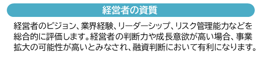 財務内容や担保・保証では測れない企業の事業内容や将来性を評価する新しい融資の考え方です。財務面だけでなく、企業の強みや成長性に基づいて資金調達の可能性を広げる仕組みです。
